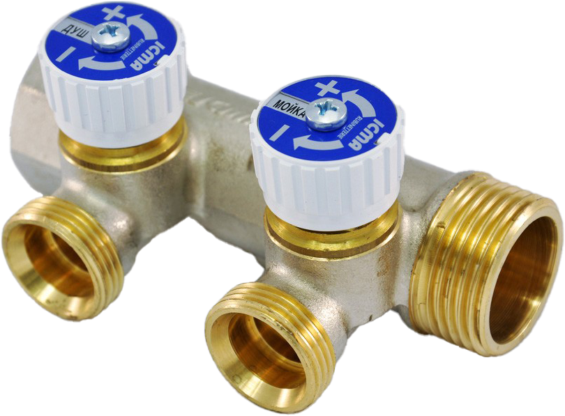 Egymáshoz csatlakoztatható osztók, szelepes kivitelben, fűtési és használati vízrendszerekhez.