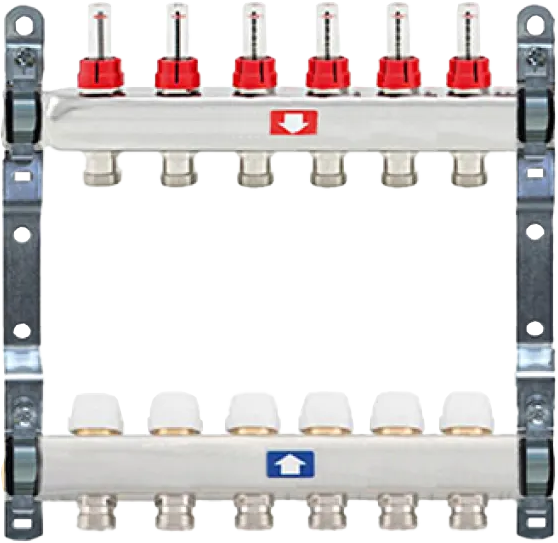 Itap padlófűtés osztó-gyűjtő áramlásmérővel 1"-3/4" 6 körös