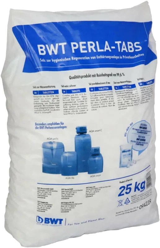 BWT Perla tablettázott regeneráló só, vízlágyító készülékek gyantatöltetének regenerálásához ajánlott nagy tisztaságú sótabletta.