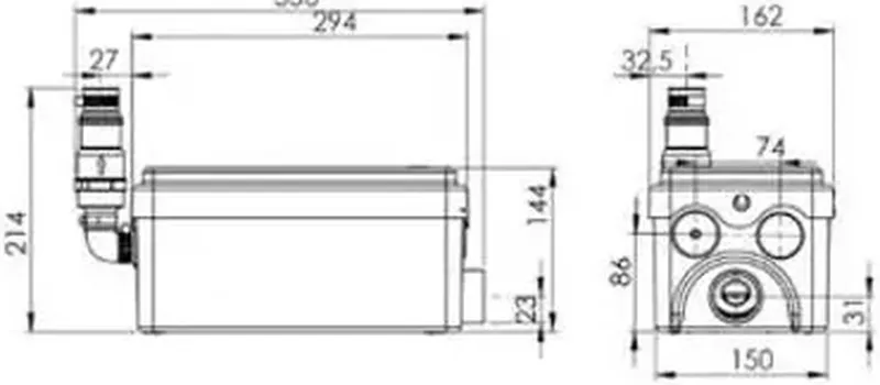 Klasszikus zuhanykabinhoz alkalmazható szivattyú.