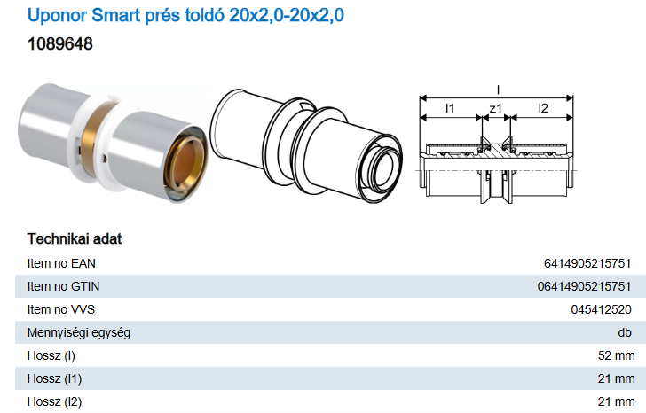 image-13cf1726.png Uponor Plusz műanyag toldó 20x20