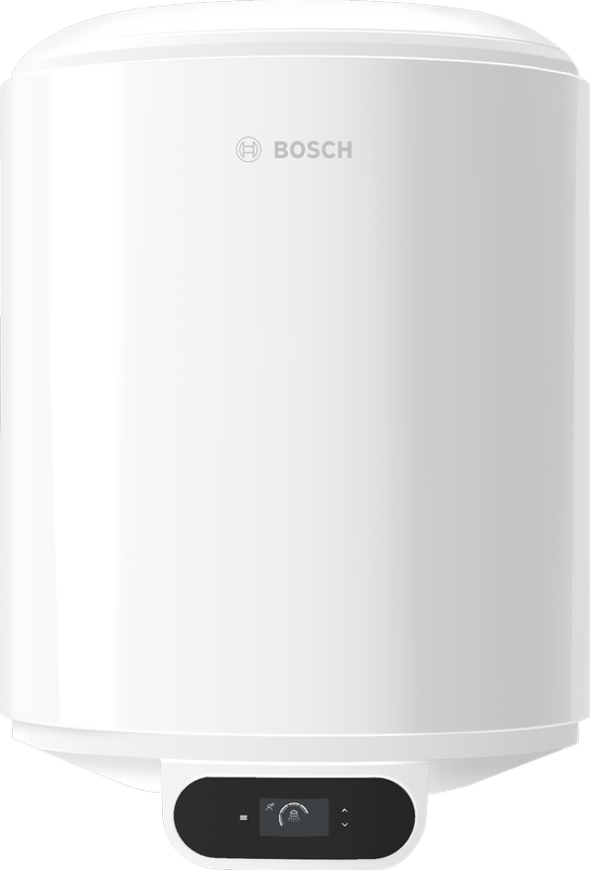 Elektromos melegvíz-tároló függőleges felszereléshez, modern Bosch dizájnnal.