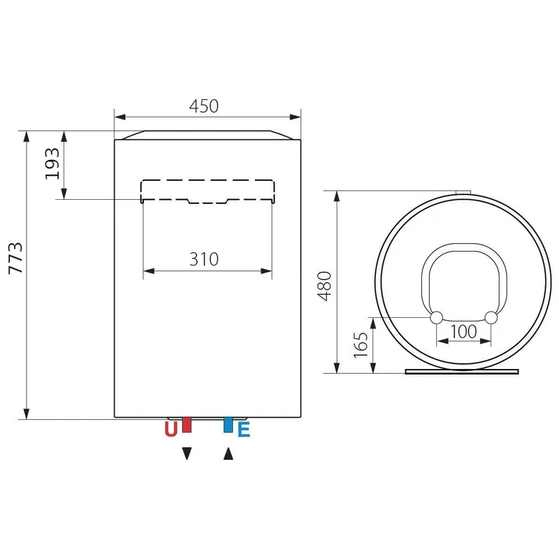 Réz fűtőelemmel és titán tartalmú zománcozott tartállyal.
