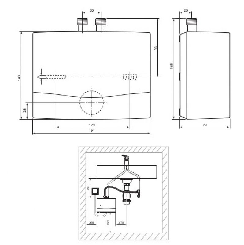 A kompakt kialakítású készülék bárhol felszerelhető, ahol hidegvíz és elektromos csatlakoztatási lehetőség van, de még a legkisebb mosdó esetén is szinte észrevétlen marad.