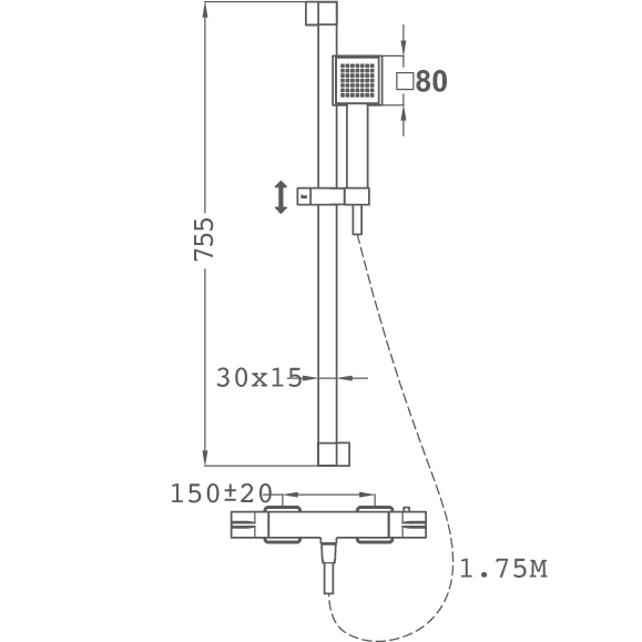 75.5 cm hosszú zuhanyrúd 3 cm x 1.5 cm