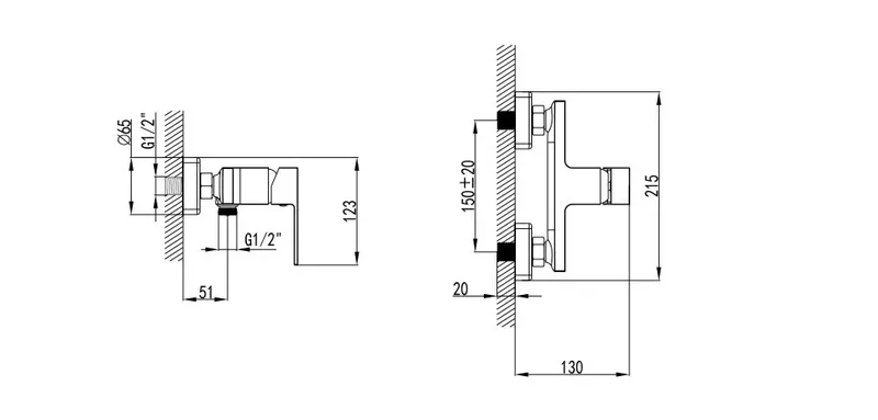 Egykaros, fali, zuhany csaptelep, melynek méretei: 21,5×13,4 cm