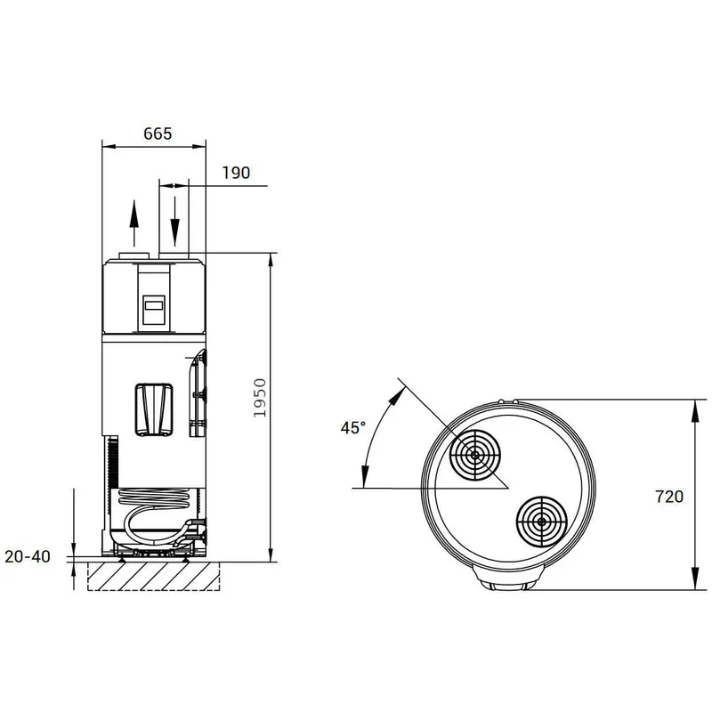 A HAJDU Hőszivattyú -7°C –os levegővel is képes üzemelni, de 0°C- alatt célszerű a hibrid üzemmódot választani, ahol egy 1800 W-os elektromos fűtőbetét segíti a melegvíz elkészítését.