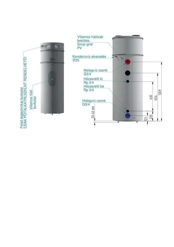 A HPT...C típusú hőszivattyús forróvíztároló tartalmaz egy alsó hőcserélőt, amellyel közvetlenül szolár rendszerhez vagy kazánhoz is csatlakoztatható.