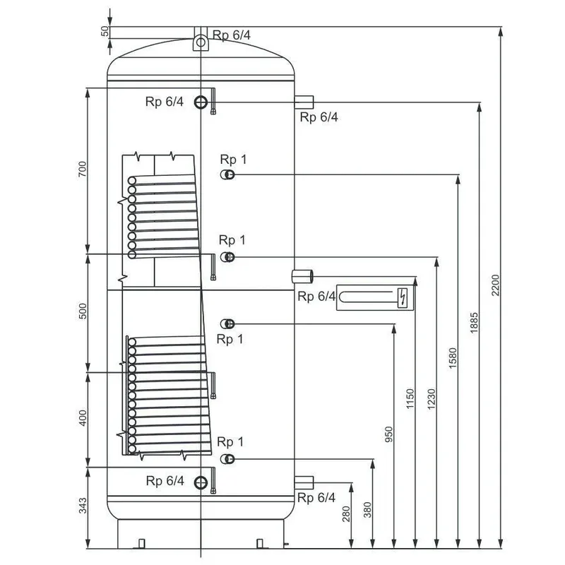 6/4” csonk 6 db; ürítő csonk nincs; hőérzékelő csonk nincs.