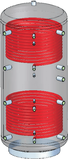 Magnet 2000L puffertároló két beépített csőkígyóval, szigetelés nélkül