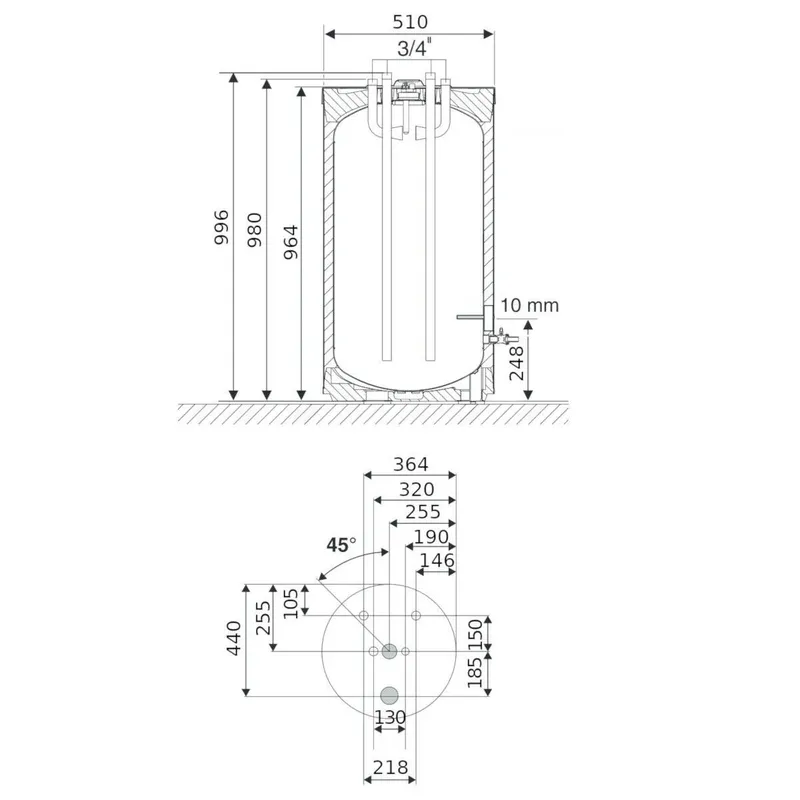Álló kivitelű, hőcserélő nélküli fűtési puffertároló.