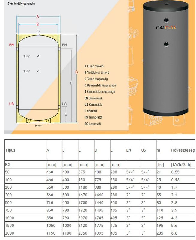 HU-RAY Q7 RG 100L hűtési puffertároló