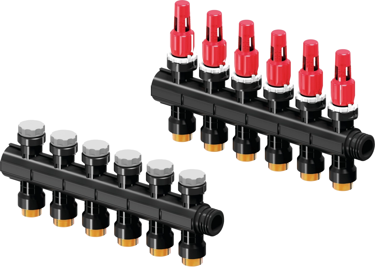 Moduláris, üvegszál erősítésű poliamid gyűjtőcső 1,3,4,6 körökkel az alapkészlethez való csatlakozáshoz.