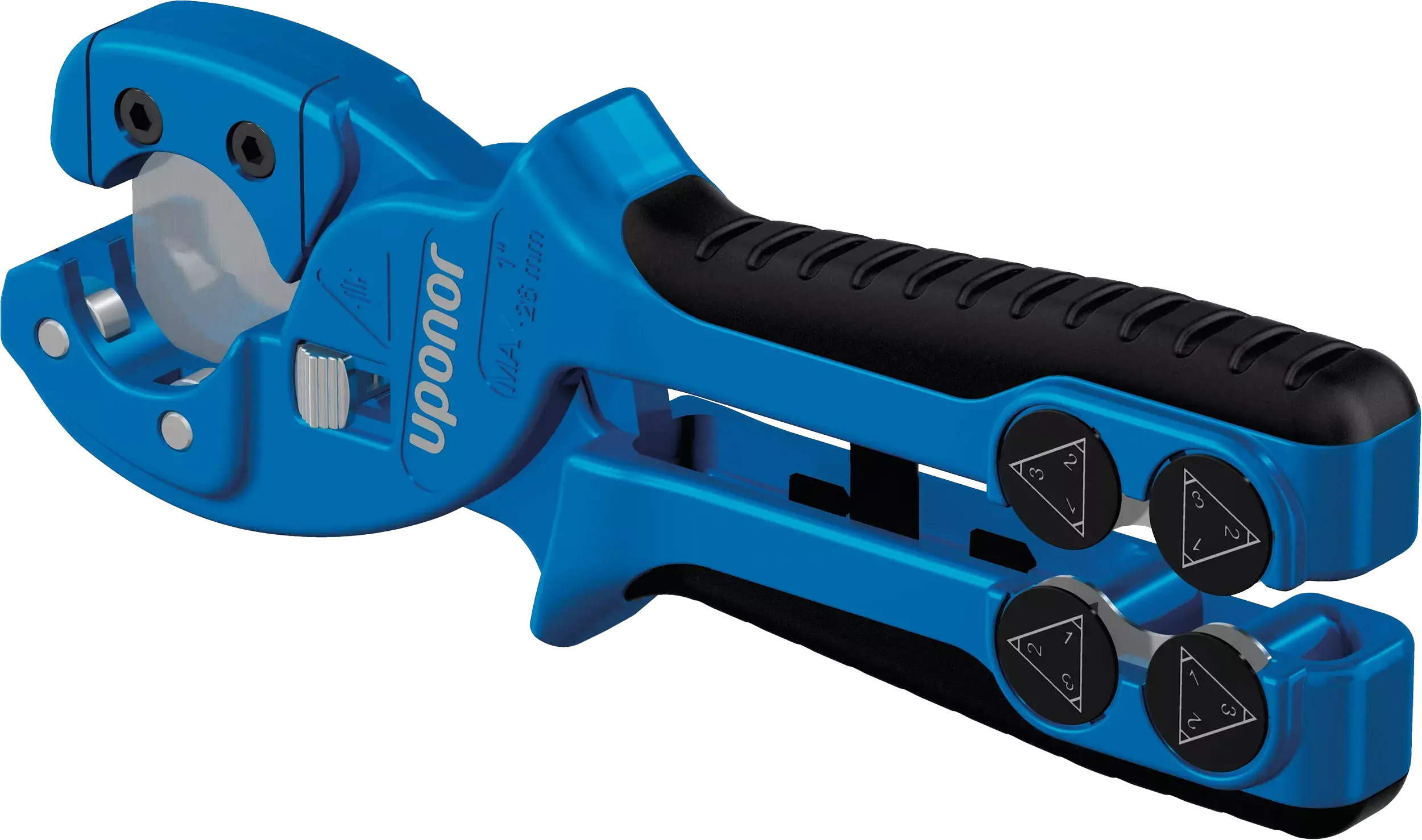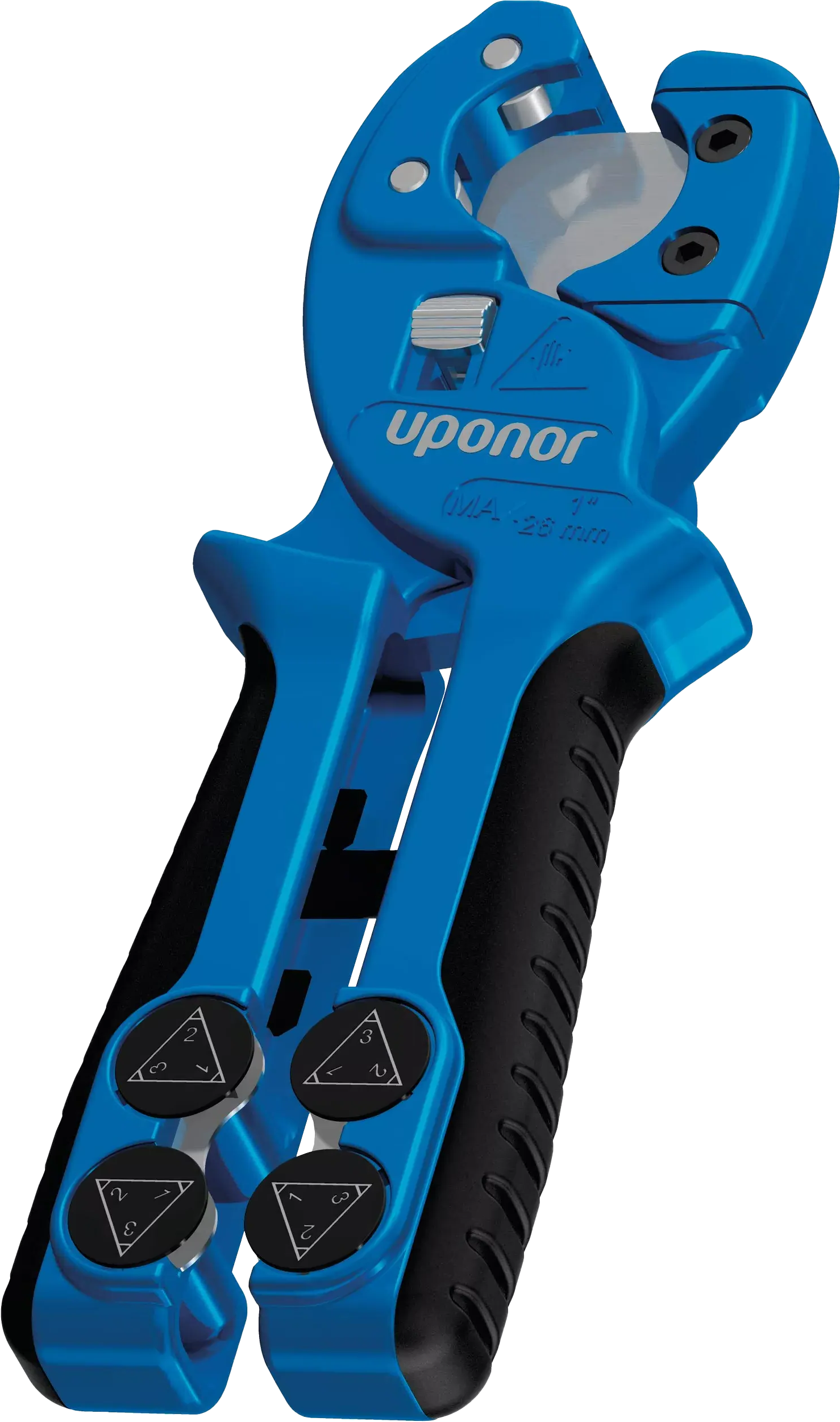 Uponor Multi csővágó, mind a PEX, mind a többrétegű csövek vágására alkalmas, 12-25 mm ig.