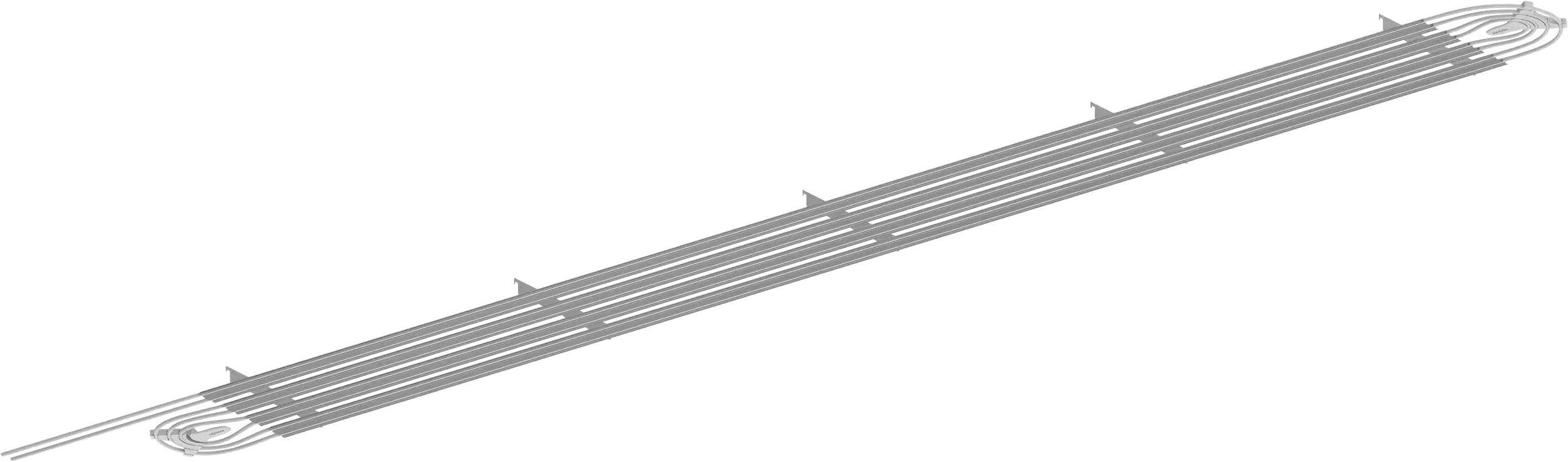 Előreszerelt sugárzó panelek, galvanizált acél hőterelőkkel, Uponor 9,9mm-es PE-Xa csővel