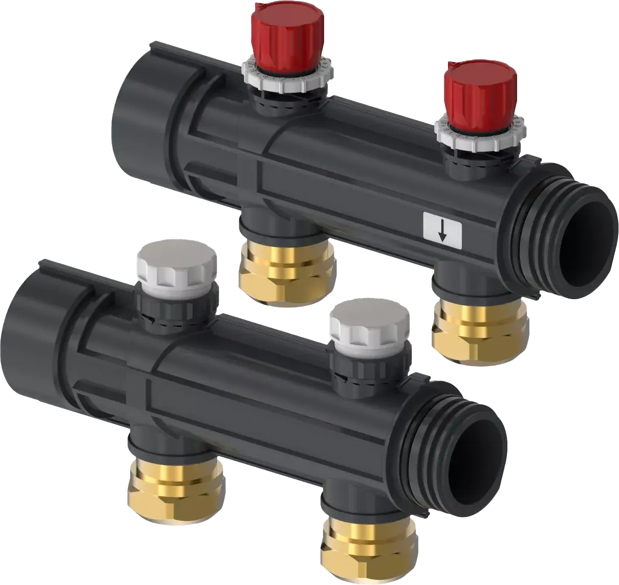 - Fűtési körök csatlakozása PE-Xa 25×2,3-as csővel (Eurokónusz, gyárilag az osztóra szerelve.) Magna ipari fűtési rendszer