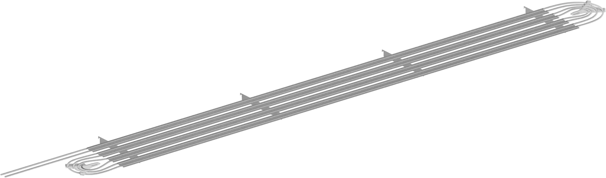 Előreszerelt sugárzó panelek, galvanizált acél hőterelőkkel, Uponor 9,9mm-es PE-Xa csővel