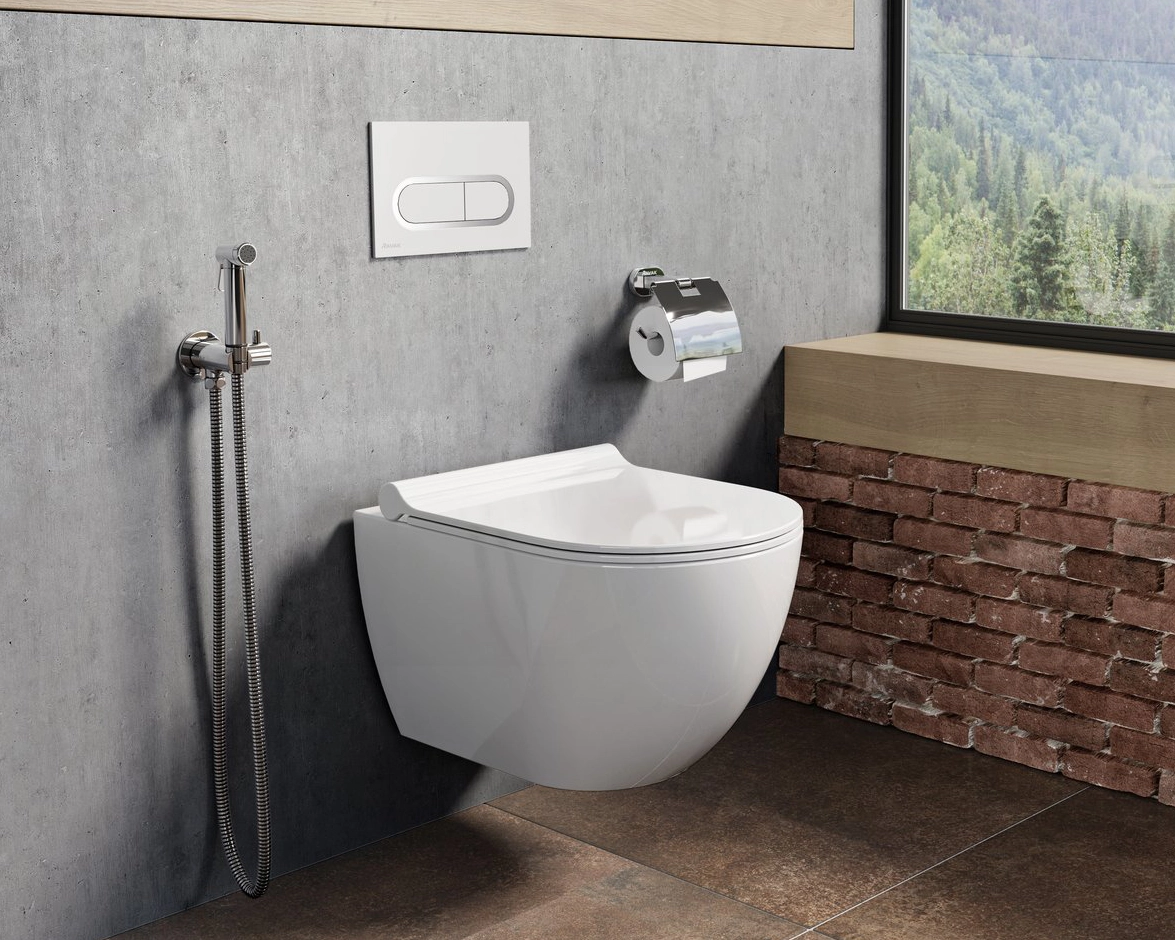 Változat: fali szerelvény bidézuhannyal. Tartalmaz egy nyitó és zárószelepet a víz megnyitásához, rajta egy rögzítési hellyel a zuhanyfej számára, egy tömlőcsatlakozót, tömlőt, és egy gombos bidézuhanyt