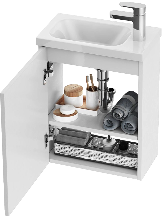 SD 400 Chrome II szekrény kézmosó alá fehér, fehér fogantyúval 152 mm