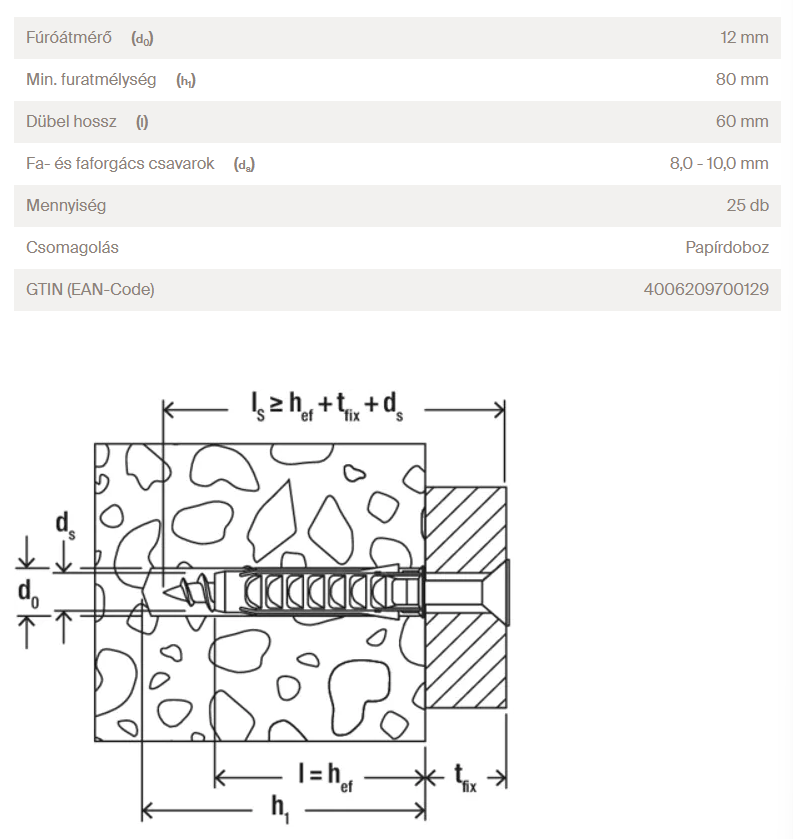 Nagyobb rögzítési mélység: jobb terhelés eloszlás üreges építőanyagokban és pórusbetonban.