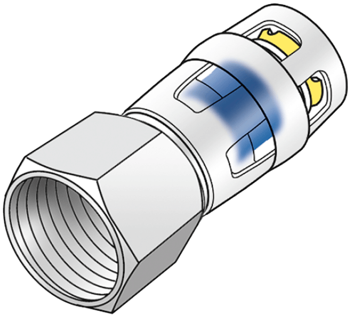 A cső csak úgy tolható be a fittingbe, ha a gyári kalibrálójával előkészítik. Ellenkező esetben a sárga biztonsági gyűrű megakadályozza a cső fittingbe való behelyezését. A szakszerű kalibrálás és a cső fittingbe való betolása után a kötés elkészült, roncsolás nélkül bonthatatlan. Szereléséhez nem szüséges présfogó!
