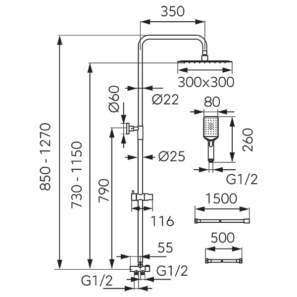Fejzuhany: a zuhanyrúd magassága 85- 127 cm között állítható