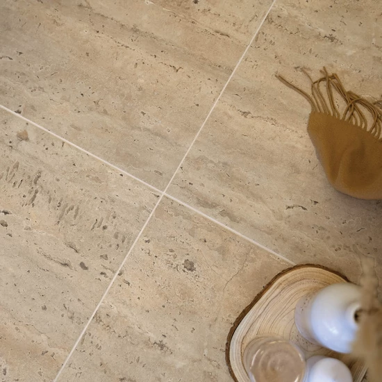 Fényes graníliás felületű, nagy formátumú padlóburkoló lap.