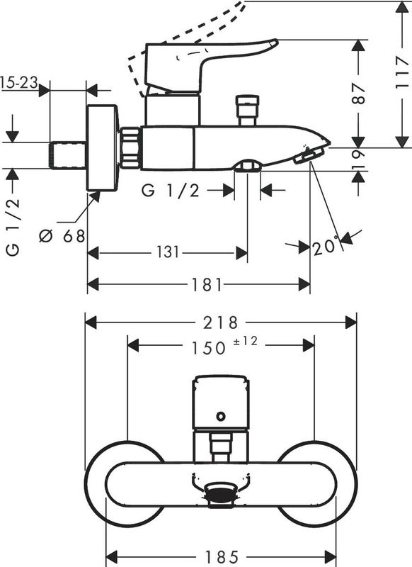 Hansgrohe Metris fali, egykaros kádtöltő- és zuhany csaptelep, zuhanyszett nélkül
