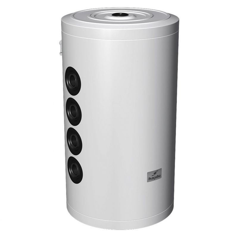 A puffertárolót acéltartály, poliuretán hab szigetelés, fémköpeny és - fedél alkotja. 60, 80 és 100 literes 2+2 csonkos, 60 literes 4+4 csonkos kivitelben készülnek.