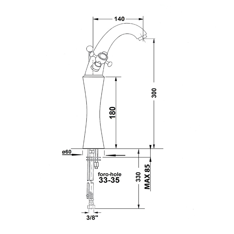 Sapho Reitano Antea magasított mosdó csaptelep automata leeresztővel, 300mm,króm 3271L