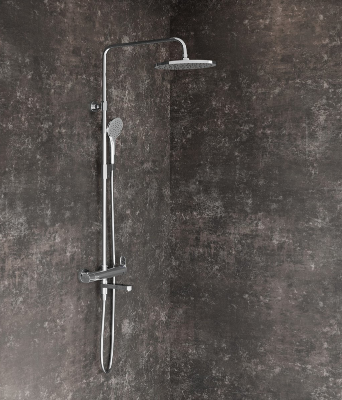 A zuhanyoszlopot értékelni fogja a zuhanysarokban. A csaptelep eredeti kifolyókarral van felszerelve,