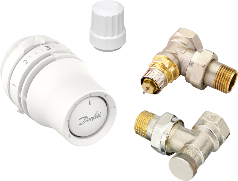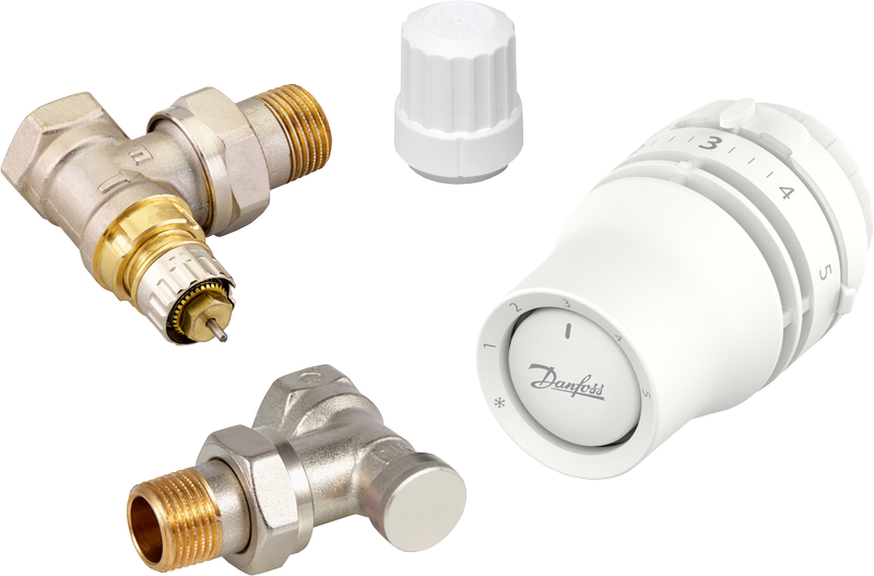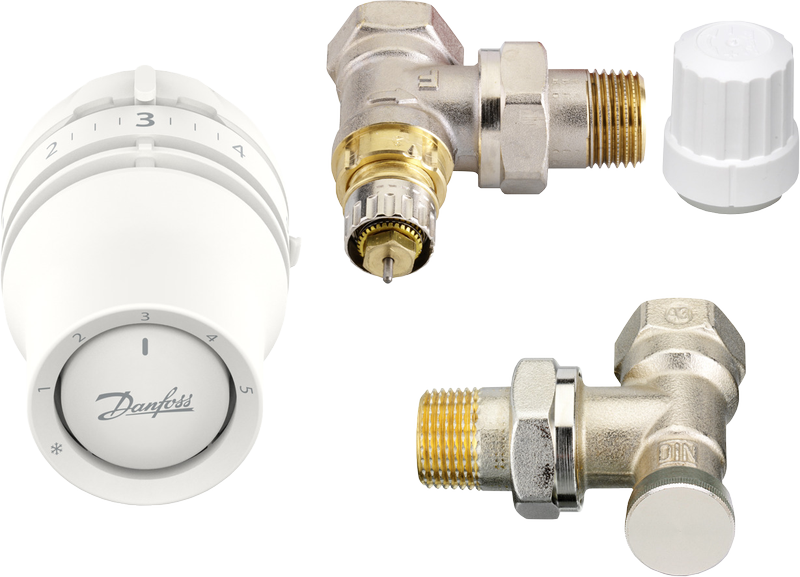 Danfoss Redia érzékelőt, RA-IN szelepet és RLV-S visszatérő csavarzatot tartalmazó készlet.