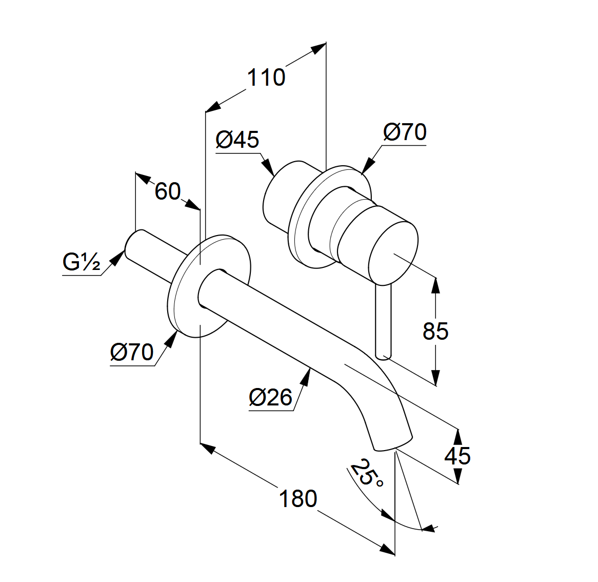 fali kifolyó benyúlása: 180 mm
