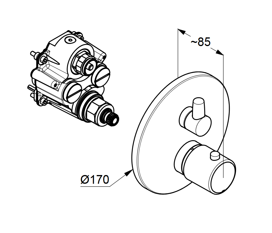 KLUDI-ZENTA falsík alatti termosztátos zuhanycsap, falon kívüli készlet szabályzóegységgel, előlappal