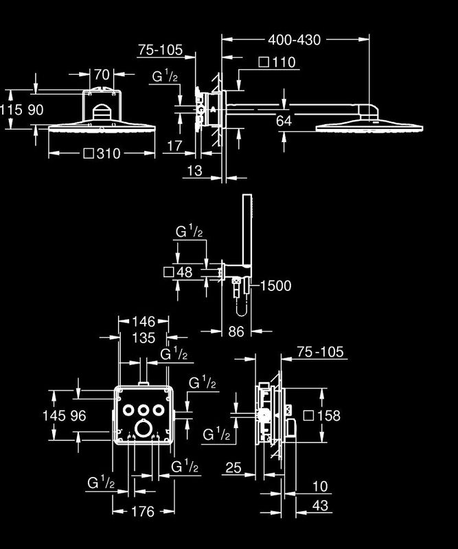 Grohe SmartControl falsík alatti zuhanyrendszer Rainshower SmartActive 310 Cube fejzuhannyal, króm