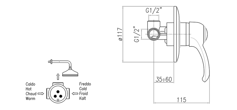 Sapho Kirké falba süllyesztett csaptelep, 1 irányú váltóval, króm