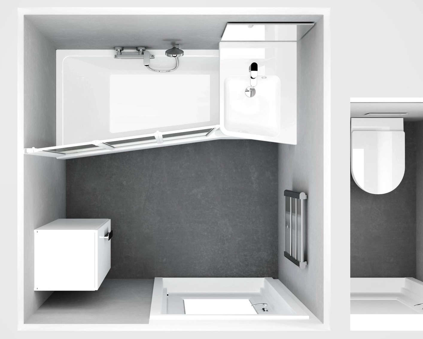 mosdóval együtt a BeHappy II tudja, mi szükséges egy kisméretű fürdőszobába. A háromrészes harmonika rendszerű kádparavánnak köszönhetően állva is kényelmesen zuhanyozhat. A BeHappy II kád helytakarékossága nem azt jelenti, hogy kényelmetlen lenne a fürdésnél. Kellő szélességének jóvoltából még a kis méretei ellenére is luxus fürdést biztosít.