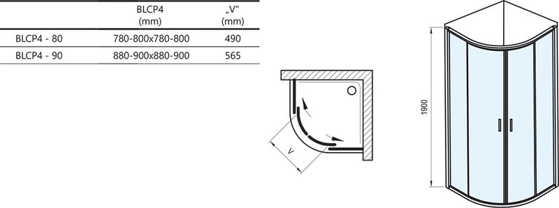 Ravak Blix BLCP4-80 négyrészes negyedköríves zuhanykabin, szatén+transparent