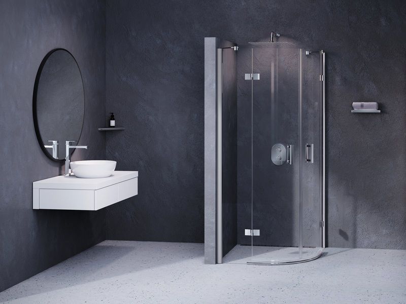 SMARTLINE FÉNYES, MINIMALISTA DESIGN. NÉGYRÉSZES, NEGYEDKÖRÍVES ZUHANYKABIN