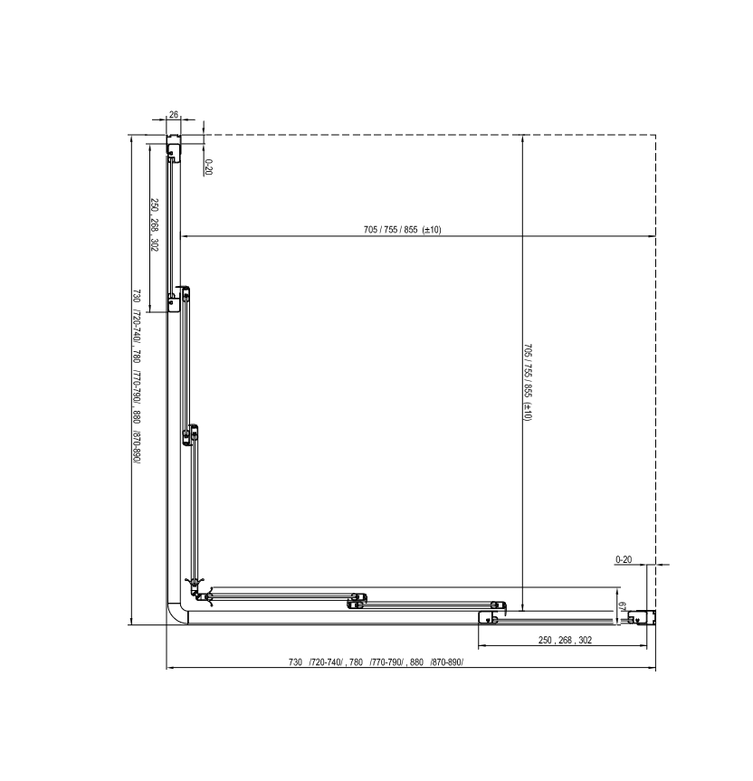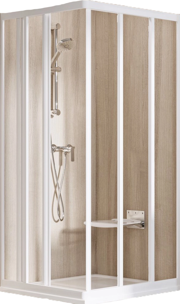 Egy teljes zuhanykabin kialakításához két darab ASRV3 tolóajtó szükséges, a sarokelem minden csomagolás tartozéka. Mindkét rész különböző méretének kombinációjával négyzet vagy téglalap alapú zuhanykabint alakíthatunk ki (pl.: 75 x 90 cm, 80 x 90 cm és így tovább).