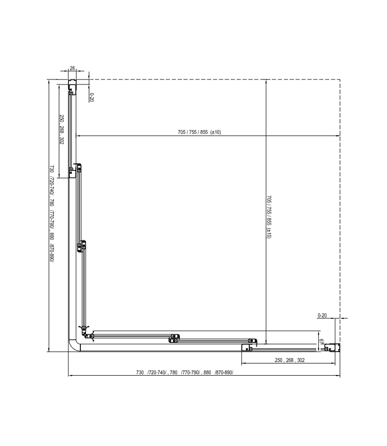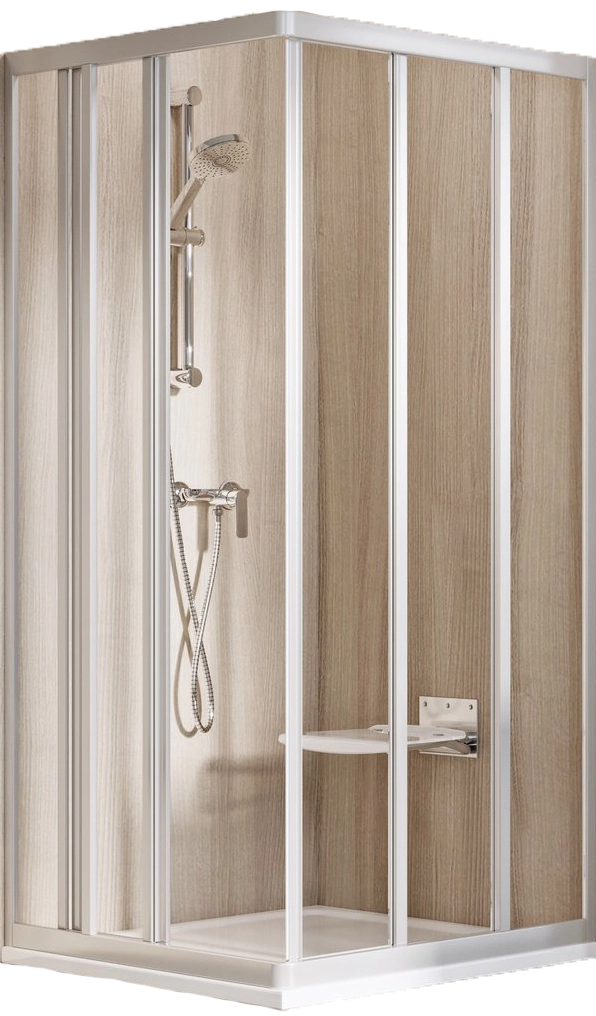 Egy teljes zuhanykabin kialakításához két darab ASRV3 tolóajtó szükséges, a sarokelem minden csomagolás tartozéka. Mindkét rész különböző méretének kombinációjával négyzet vagy téglalap alapú zuhanykabint alakíthatunk ki (pl.: 75 x 90 cm, 80 x 90 cm és így tovább).