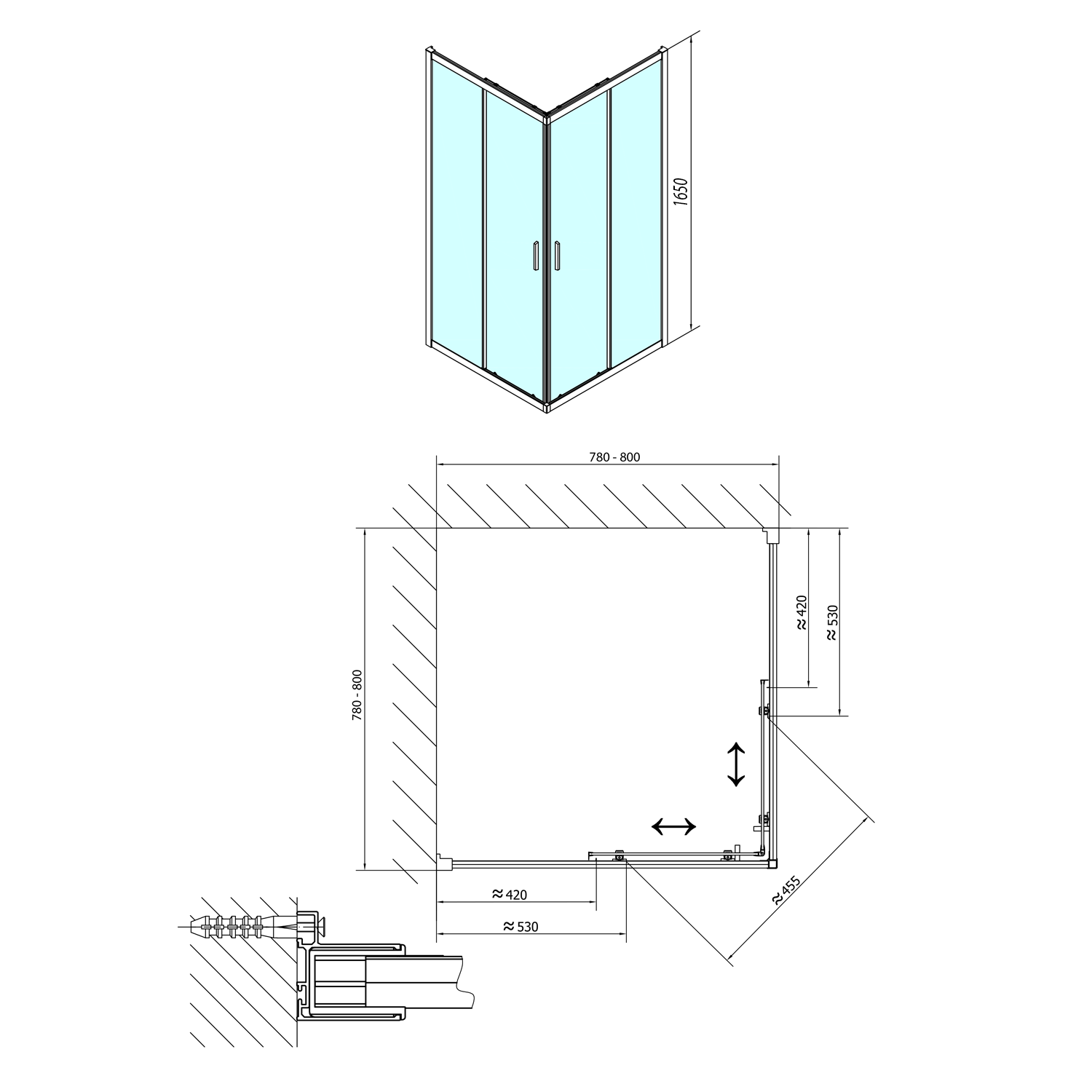 Sapho Carmen szögletes zuhanyajtó 800x800x1650mm, transparent üveg