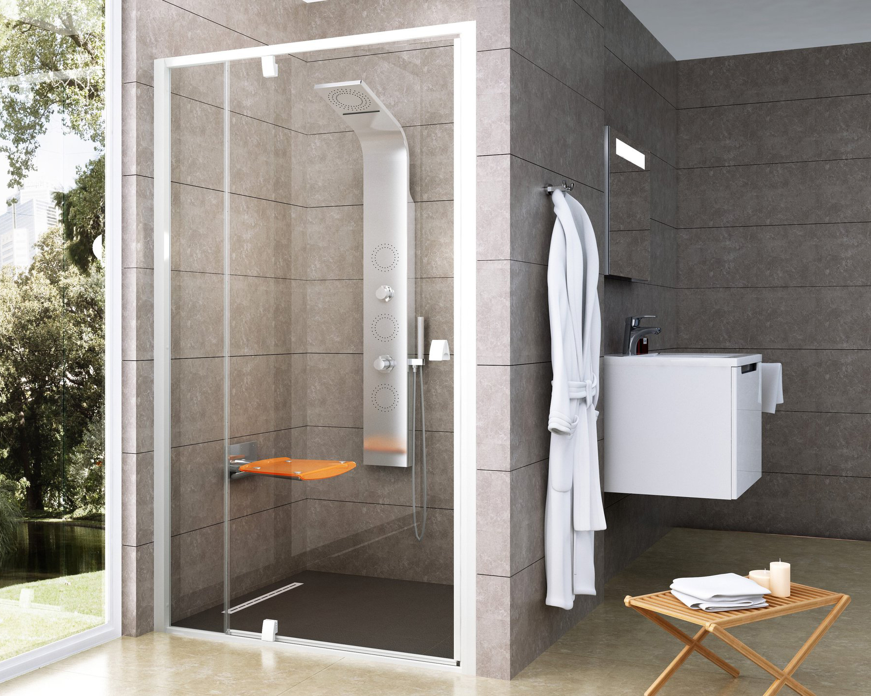 A kétrészes zuhanyajtó zuhanyzófülke kialakítását segíti megteremteni 100, 110 és 120 cm szélességű beugrókban. A keretek bármilyen típusú fürdőszobába három különböző kivitelben telepíthetőek.