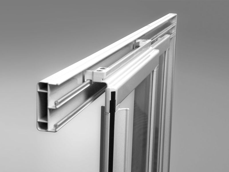 A termék egy fix és két toló elemet tartalmaz. A termék 180°-os elforgatásával bal- vagy jobb tolóajtó változatot kap.