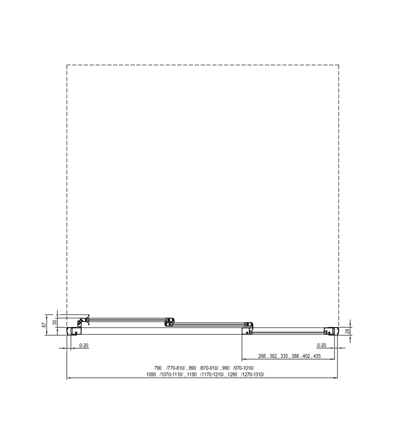 Rendkívül tartós, extrém terhelést is kibíró, szinte törhetetlen zuhanyajtó. Ideális megoldás nyilvános zuhanyzókba, hotelekbe vagy kollégiumokba és a 80 - 130 cm szélességű beugrókba.