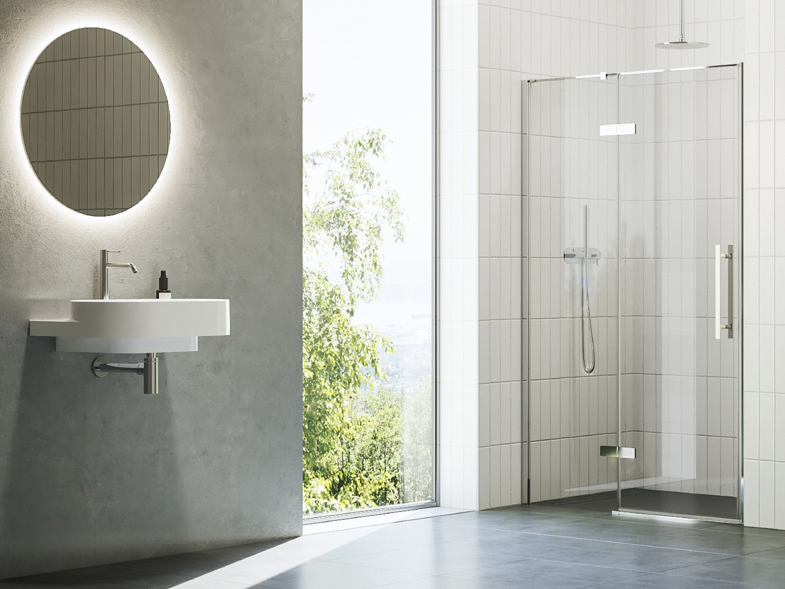 A zuhanykabin a fürdőszoba lecsempézett sarkába RAVAK Perseus Pro, Perseus Pro Chrome, Gigant Pro, Gigant Pro Flat, Gigant Pro Chrome zuhanytálcákra vagy közvetlenül a zuhanyfolyókával vagy padlóösszefolyóval rendelkező lecsempézett padlóra telepíthető.