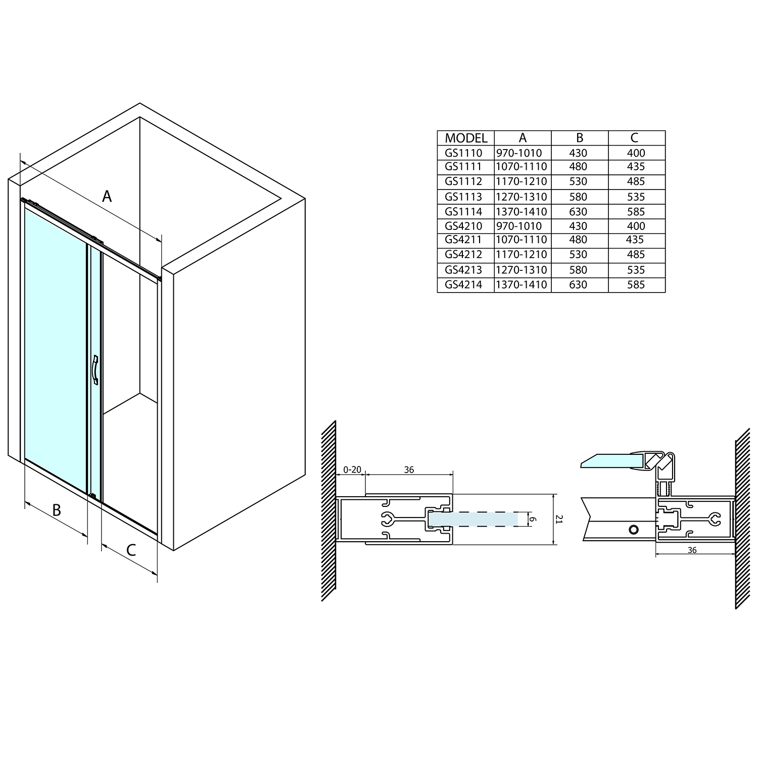 Beépítési méret oldalfallal kiegészítve : 980-1020 mm
