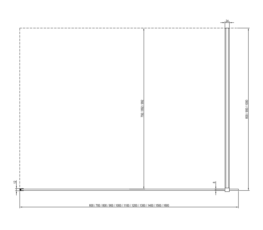 A Walk-In Wall termékek a következő méretváltozatban elérhetőenk: