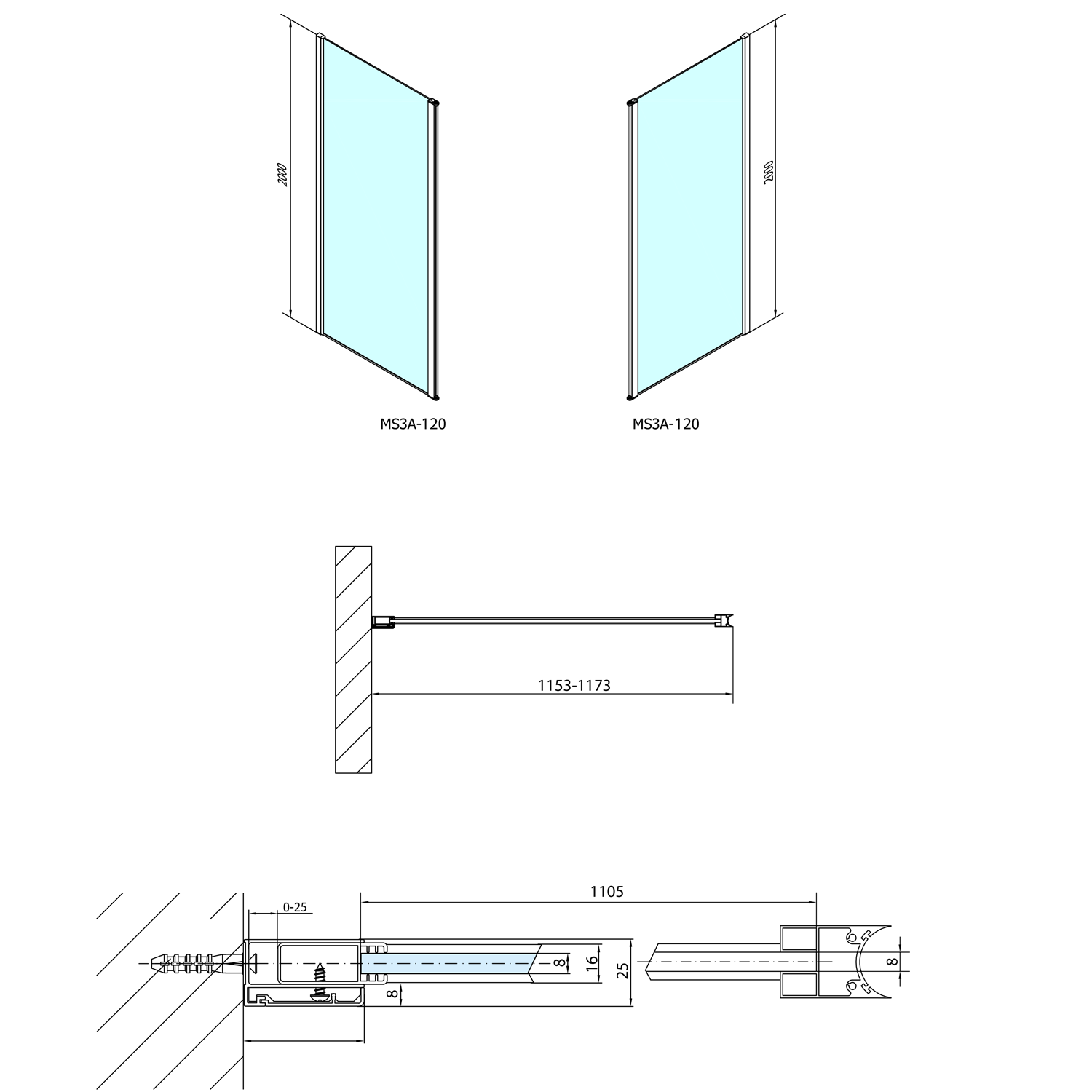 Sapho Modular fix zuhanyfal, L típusú, ajtós változat 2/1 modul, 120x200