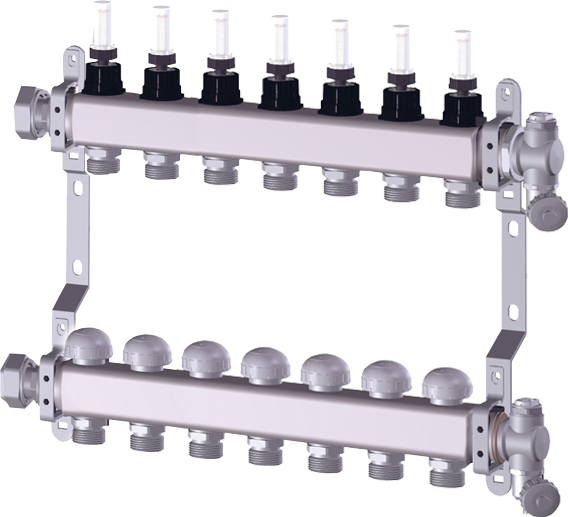 1” csatlakozási méretekkel, töltő-ürítő szerelvényekkel, áramlásmérőkkel (cserélhető), kézi légtelenítőkkel,